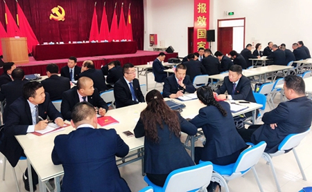 10月13日,蓝山屯河党委召开2018年基层党建工作经验交流会,深入学习贯彻党的十九大报告和系列重要讲话精神,贯彻落实中央和自治区党委关于加强国有企业党的建设、发挥基层党组织重要作用的安排部署,夯实公司党的基层党组织建设,为推动落实公司经营、管理、发展目标任务提供坚强的政治保证。公司党委书记、总经理李鹏及全体党委委员,各基层党总支书记、党支部书记及党员代表约60人出席了会议。