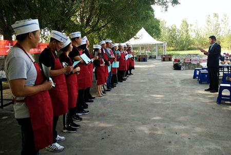 之后,美食大赛正式开始。参加此次比赛的共有17位选手,他们各个精神饱满,摩拳擦掌、头戴厨师帽,身系围裙装备齐全的介绍了自己和自己的参赛作品后,纷纷在自己的灶台上开始忙碌,在现场大显身手。