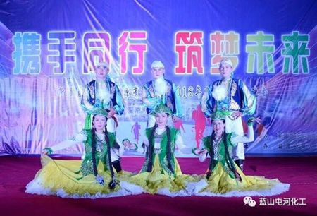 电石厂、双甲厂、乙炔厂及人力资源部演绎的诗朗诵《这一年》、《如火的季节》、《在路上》,热情讴歌了能源人在一体化项目建设中的付出与收获,向全体新老员工传达了我们不忘初心,牢记使命,为蓝山屯河共同的事业梦想而奋斗的坚定信念。舞蹈《飞翔》、《黑走马》,在各族新老员工的共同参与下,形声相悦,意趣非凡,展现了能源公司各族员工亲如一家,和谐共生的美好画面。现代舞《活力无限》激情四射,动感十足;奇台县助演嘉宾王静,张薇分别以演唱和舞蹈的形式,为全体观众带来了精彩的视听享受,一次次掀起了晚会的高潮。