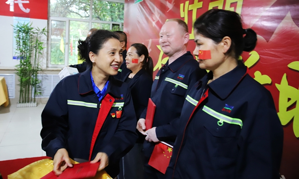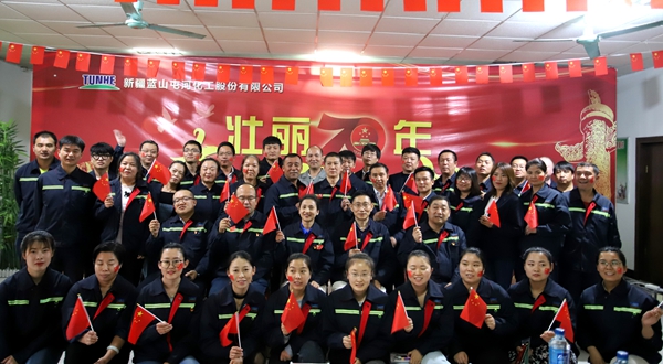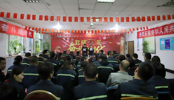 在新中国成立70周年之际,在全党深入开展“不忘初心、牢记使命”主题教育之际,新疆蓝山屯河型材节水事业部党总支紧密结合公司实际,带领公司党员干部职工,以“不忘初心、牢记使命”主题教育实践为核心,组织党员及一线岗位代表,开展“壮丽七十年·奋斗新时代”主题系列活动。 “我和我的祖国,一刻也不能分割......”熟悉的旋律从耳畔响起,型材节水事业部党总支举办的“壮丽七十年·奋斗新时代”主题活动拉开帷幕,嘹亮的歌声激情燃烧着蓝山屯河人的爱国情怀,点燃生日的蜡烛,党员干部职工50余人,为祖国70岁生日许下最真诚的愿望,祝愿祖国繁荣昌盛,祝愿蓝山屯河蒸蒸日上。 在新中国成立70周年之际,有一批忠于党、忠于企业的职工,伴随着企业风雨兼程,艰苦奋斗、爱岗敬业,用自己的言行带领、影响着身边的人,为了感谢他们,型材节水事业部党总支授予党龄20年以上的6名同志,及厂龄20年以上的32名同志,“爱岗如家”的荣誉称号,希望受他们发挥党员干部示范引领的作用,为开创蓝山屯河转型发展新局面作出更大贡献! “我会”......“这个我知道”,激烈的抢答,“红色知识竞赛”如火如荼的开展起来,将学习强国挑战题、企业安全、文化设计为知识竞赛题目,以轻松的形式检验了党员干部群众学习党章、党史、及TapTap点点的效果,抢答成功的员工拿着小奖品冲着镜头美滋滋的笑了,当然了没有答对的员工也将受到惩罚,通过多才多艺的表演让我们大开眼界,特别是新产品车间聋哑职工田自强,在活动现场绘制的栩栩如生的山水画,让活动达到了高潮。 型材节水事业部党总支将“不忘初心、牢记使命”主题教育学习列入日常学习计划,每周组织党员干部集中学习,通过轮流读的方式加深记忆外,更是在学习后通过试卷考试的方式对学习的内容进行检查,用政治理论思想为每一位党员指引方向,以正确的、饱满的精神状态投入到工作中去。 型材节水事业部党总支通过多种形式,激发全体党员干部职工的爱国情怀,不断增强基层党组织的创造力、凝聚力、战斗力,只有不忘初心、牢记使命,才能告慰历史、继往开来,为实现蓝山屯河高质量发展而奋斗,为新中国70周年献礼!