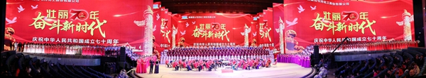 为隆重庆祝中华人民共和国成立70周年,深入推进“不忘初心、牢记使命”主题教育,进一步弘扬爱国精神,重温红色经典,丰富职工文化生活,蓝山屯河党委在新疆大剧院隆重举行“壮丽70年、奋斗新时代——蓝山屯河庆祝新中国成立70周年”大合唱比赛。