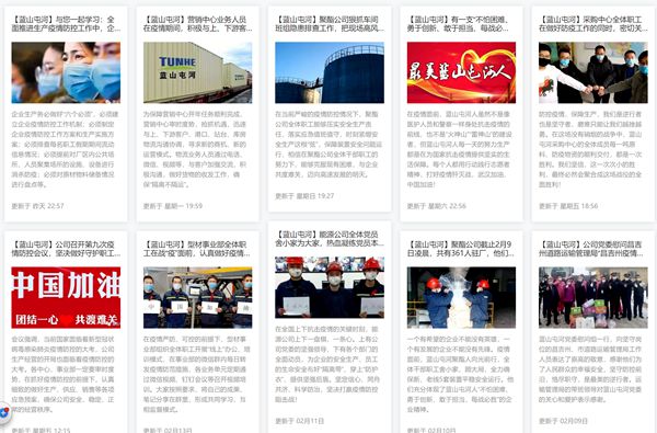 行政部在公司疫情防控工作领导小组指导下,先后下发了《致员工的一封信》、《倡议书》。利用“蓝山屯河官方微信公众号”、“蓝山屯河网站”等媒介,截止2月17日累计发布疫情防控、安全生产、保障经营、感人事迹等新闻报道30条,推送“蓝山屯河快报”6期。同时,各中心、事业部、部门的行政系统、各办公室也分别通过悬挂张贴横幅标语,在LED显示屏、食堂车载视频滚动播放等形式,开展多角度宣传报道,讲好“蓝山屯河故事”,有效宣传防治信息,普及科学防治知识,为疫情防控营造了良好氛围,确保了各单位和全体职工思想上真正重视、措施上科学有效、机制上运转顺畅,促进了企业的安全生产。