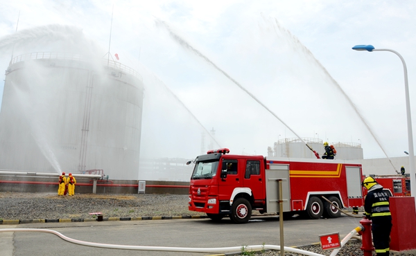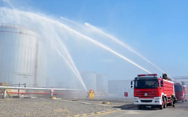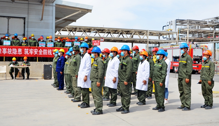 随即一串紧急的现场警报声将“能源公司甲醇罐区甲醇泄漏大型应急演练活动”拉开了帷幕。来自奇台县政府和能源公司两百多人在现场观摩了应急演练活动。