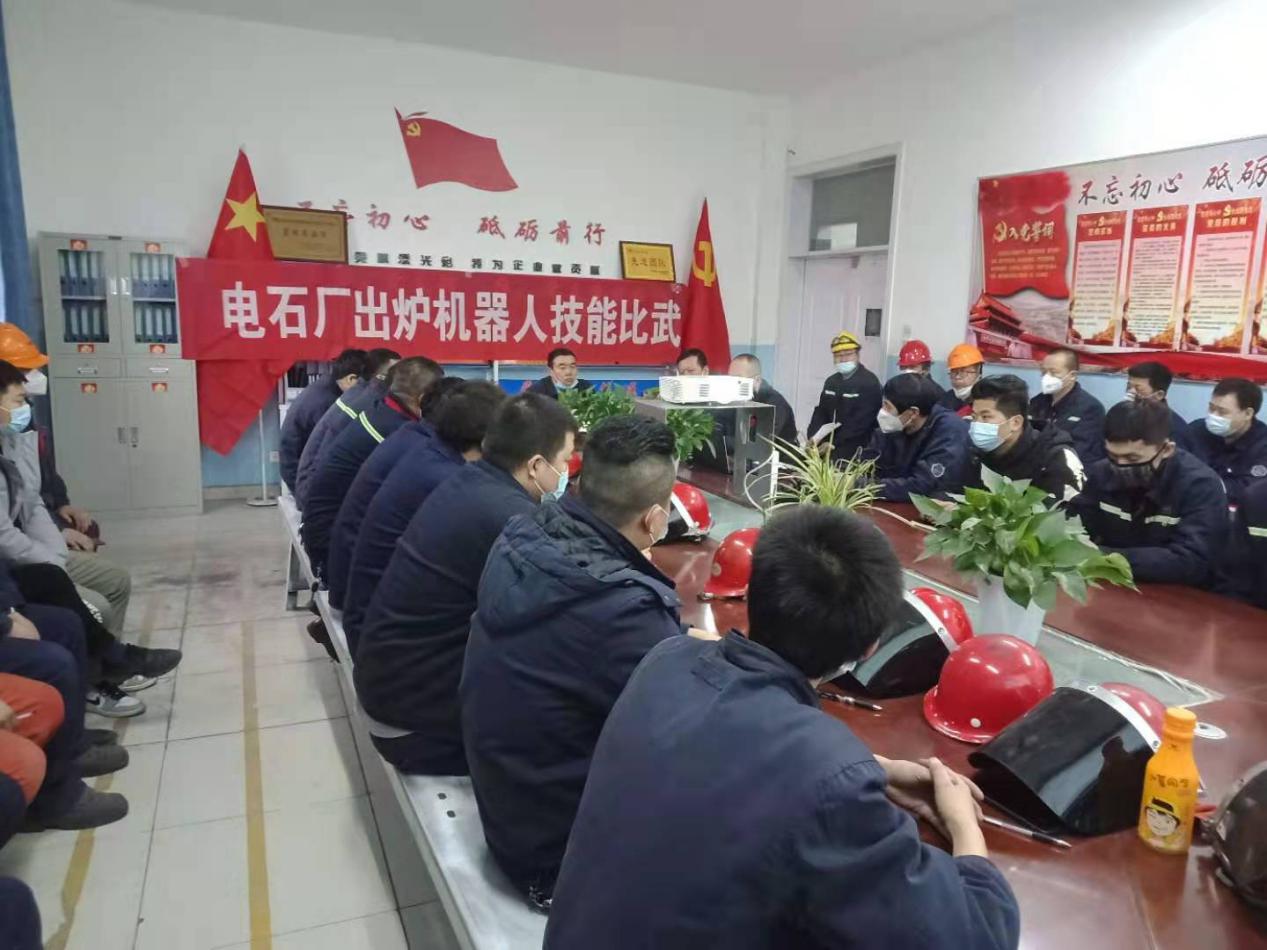 电石厂党支部两名党员在机器人操作比武过程稳定,不仅要在最短的时间内完成操作,还要保证出炉质量,选手们在完成自己规定操作的同时还要紧盯对手,一个个互不相让,你追我赶,评委们在旁认真观看选手们操作手法和质量,给出了宝贵的评分。本次技能比武旨在互相学习、互相帮助、取长补短,使选手之间形成学技术、比技能、共发展的良好赛风。针对参赛选手的表现情况,裁判组专门召开裁判组会议。裁判长对实操环节的裁判界定进行了总结,各裁判员也就自身职责交换了相关看法。比武活动在紧张、严肃的氛围中圆满结束。