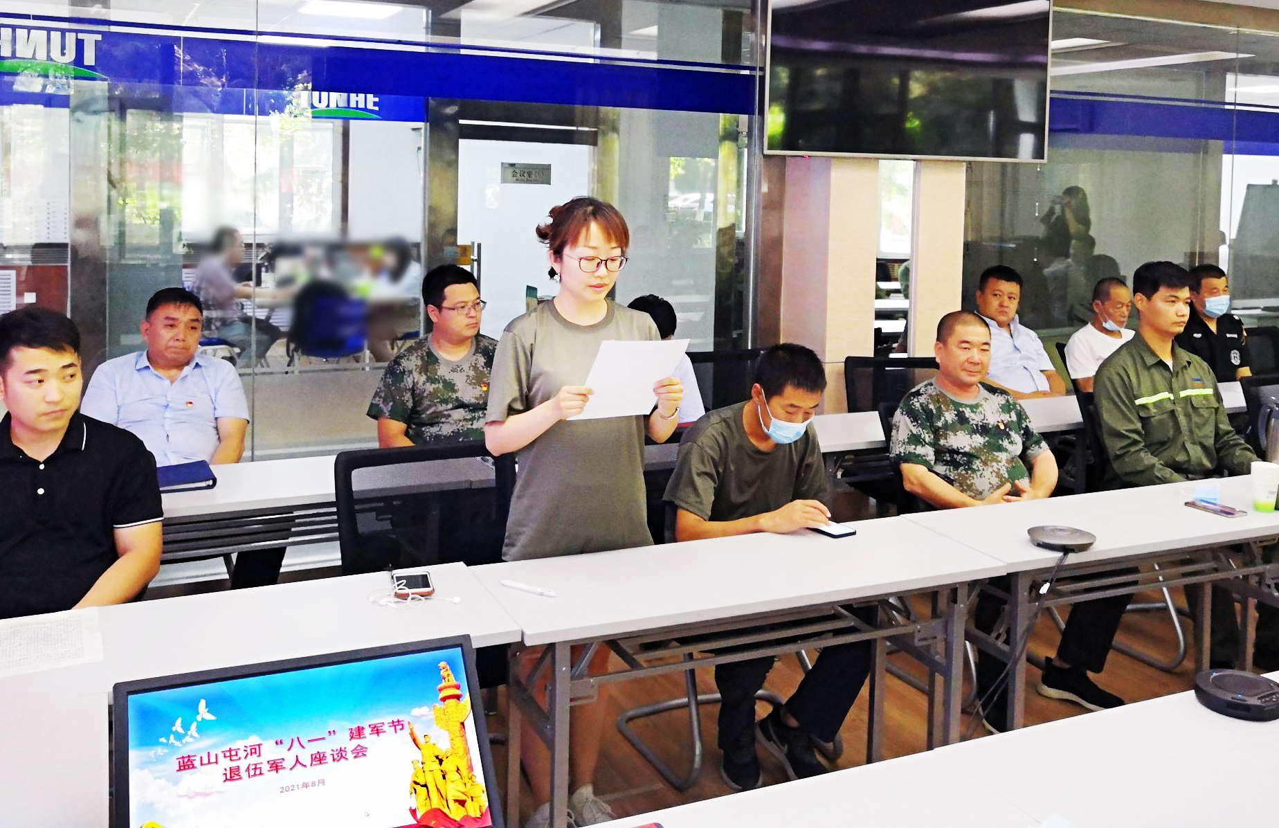 7月29日,在“八一”建军节94周年来临之际,蓝山屯河召开退役军人迎“八一”座谈会,全公司来自不同岗位的66名退伍军人参加了此次座谈会,会议以视频形式召开。