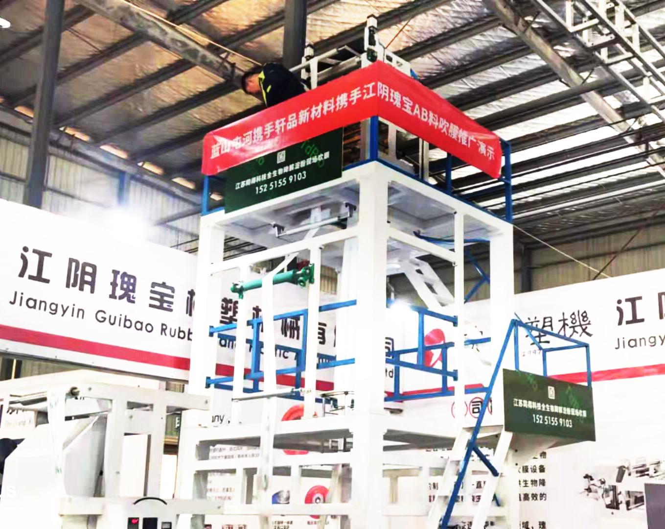 展会开幕后,公司展位立刻吸引了桐城当地众多终端制品企业,工作人员与前来参观的客户热情友好的沟通交流,就后期业务合作及共同发展进行了深入讨论。展会现场,还安排专业技术人员向观众生动地演示了AB料吹膜及收卷制袋的过程,并详细介绍AB料生产模式。通过观看演示过程客户了解到AB料生产模式,对其产生浓厚兴趣,纷纷表示有意愿在生产过程中尝试使用AB料生产模式。