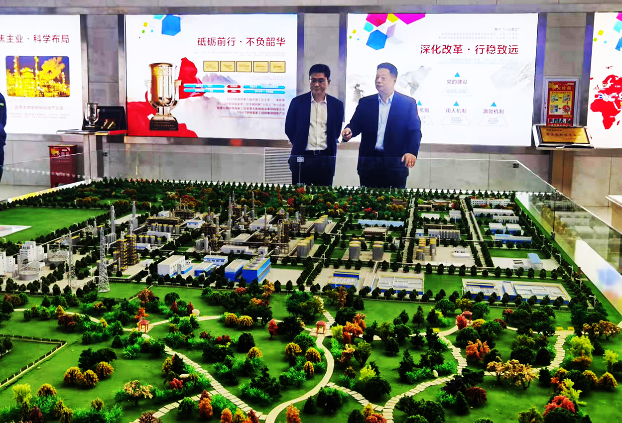 在展厅内,李鹏总经理向张培毅书记一行详细介绍了蓝山屯河的体制变革历史、产品种类、生物降解材料、管理理念、安全生产、企业荣誉、党建等情况。在参观过程中张培毅书记一行对蓝山屯河变革史、生物降解材料、公司党建等情况进行了沟通交流并做了详细了解。