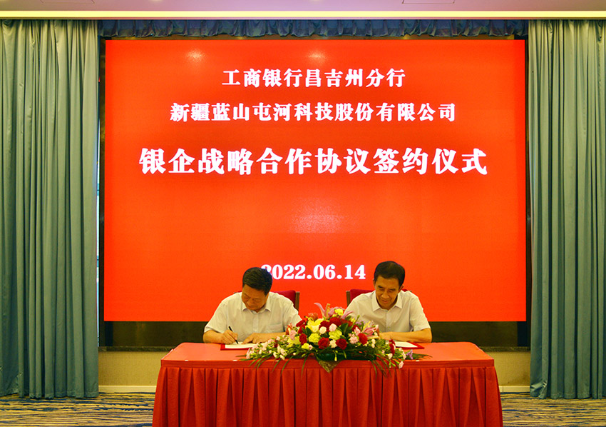 会后,李总与工商银行昌吉州分行尹斌行长代表双方签署了《全面战略合作协议》。本次银企全面战略合作协议的签署,是蓝山屯河与工商银行昌吉分行加深交流、加强合作的又一座里程碑,双方将以此为新起点,增进信任,充分发挥各自领域的资源与优势,共建银企合作新平台,促进银企双方共同发展,实现企业和金融事业共同繁荣。