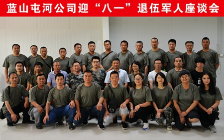 为庆祝中国人民解放军建军91周年,激发广大退伍军人在公司生产、经营、发展、党建及文化建设中,发扬光荣传统、发挥生力军作用,蓝山屯河公司党委组织召开了迎“八一”退伍军人座谈会。来自公司各条战线上的51名退伍军人代表参加了座谈,纪委书记史俊代表公司党委,向全体退伍军人表示诚挚的问候和节日的祝福!