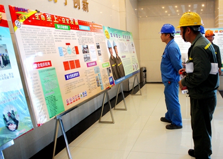 “生产车间的版面设计很丰富”、“储运办的很新颖”,“安生办内容突出,警示教育意义强......”,前来观看板报比赛的职工们议论评点着。近日,由安生办组织事业部各车间、部门开展了安全板报比赛,参赛的板报内容紧紧围绕“百日劳动竞赛”及安全生产,来丰富职工安全宣传形式,营造了劳动竞赛良好的氛围。